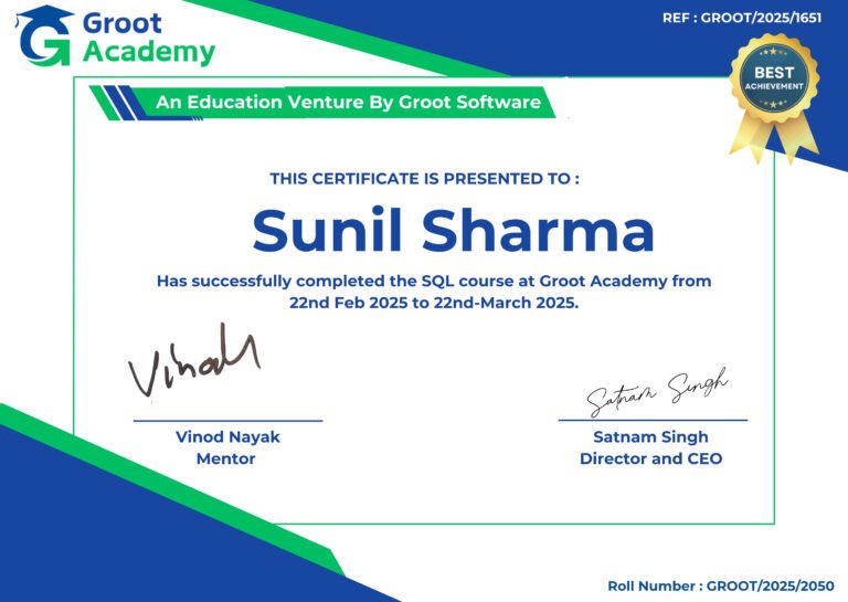 Groot SoftwareBlogSummer Flutter Development Internship in India – Learn to Build Cross-Platform AppsGroot SoftwareBlogSummer Full Stack Development Internship in India – Learn MERN & MEAN StackGroot SoftwareBlogKickstart Your Career with a Summer Java Internship in IndiaGroot SoftwareBlogPython with Data Science Internship 2025, Kickstart Your Career with Hands-on ML & AI TrainingGroot SoftwareBlogSunil Sharma: Excelling in Python at Groot AcademyGroot SoftwareBlogSunil Sharma: Excelling in SQL at Groot Academy 1 2 … 32 33 34 … 41 42