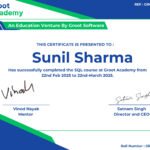 At Groot Academy, we take immense pride in the achievements of our students. Today, we celebrate the success of Sunil Sharma, who has successfully completed the SQL Course at Groot Academy from 22nd February 2025 to 22nd March 2025.
